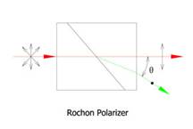 洛匈棱镜由两片双折射晶体胶合或者光胶而成。由于折射率相同,o光和e 光在第一块晶体中以o光的折射率no沿着光轴方向一起传播.当两束光进入第二块晶体后,o光还是以no的折射率继续传播,而E光的折射率由no变成ne,并在截面上产生折射.折射的角度在第二块晶体和空气的界面上进一步增加,这样出射的O光和E光就产生了一个分离角度.我公司可以根据客户要求在特定的波段下设计分开的角度。